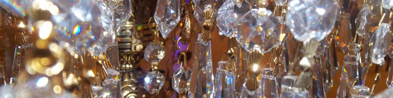 Lustres. Plafonniers. Chandeliers. Bibelots. Tablettes en Cristal pour la décoration intérieur.