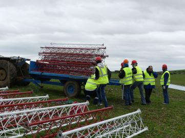 montage et pose d'un mât de mesure avec tout les instrument de mesure anémomètre...