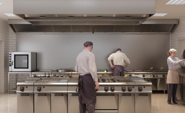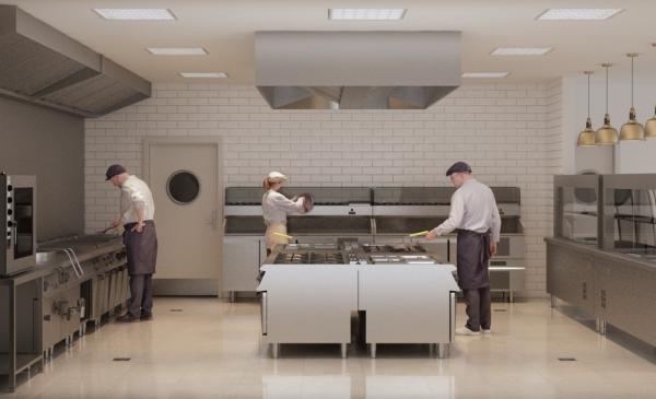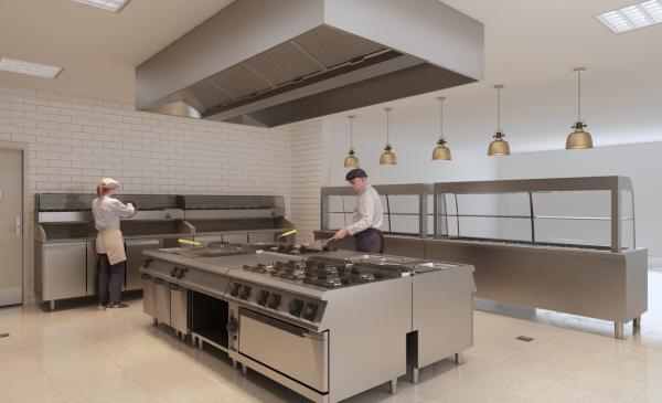 proposition d'un restaurant grand prod cuisine central ligne 90 avec une ligne de grillade et marmite